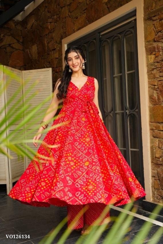 Introducing our elegant Bandhani Swirl Kurta Palazzo Set, perfect for festive occasions and celebrations. With its soft fabric and graceful Bandhani design, it’s an ideal choice to shine this Wedding season.