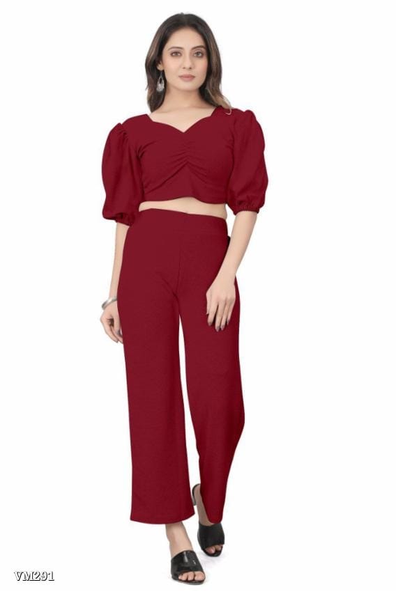 Catalog Name: * MY URBAN ELEGANCE tWomen’s Puff Sleeve Crop Top & Wide Leg Pant Co-Ord Set